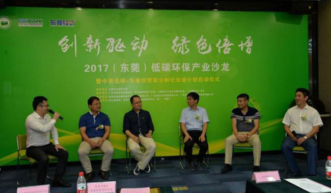 7月5日,由東莞市科學技術局指導,廣東省綠色供應鏈協會、中英(國際)低碳環保產業園、東莞經濟與城市發展研究會等單位聯合發起的“創新驅動 綠色倍增——2017(東莞)低碳環保產業沙龍暨中英低碳-華澈創智聯合孵化加速計劃啟動儀式”在松山湖中英(國際)低碳環保產業園成功舉辦,來自環保行業協會、綠色環保企業、投融資機構、智庫和媒體代表50余人齊聚一堂,共同探討以產業的資本支持、產業的實體承載、產業的協同互動等措施,推動相關企業實現倍增發展。
