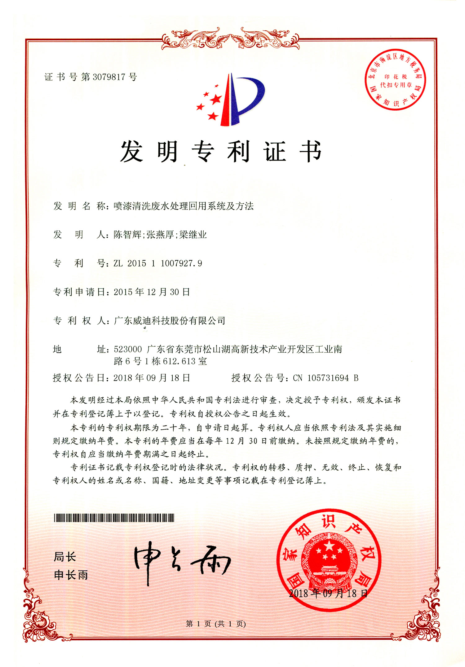 20180918發明專利-噴漆清洗廢水處理回用系統及方法